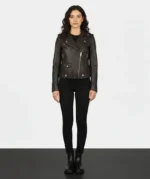 Classic Chocolate Brown Sheepskin Biker Leather Jacket | Women