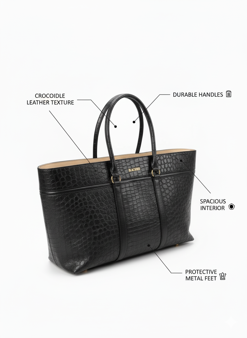 The Valoré is meticulously designed with a focus on quality and durability. The striking crocodile leather texture offers a unique, high-end look that is both eye-catching and classic. The bag’s durable handles are reinforced to withstand daily use, providing a comfortable and secure grip whether you’re heading to the office or a weekend getaway.